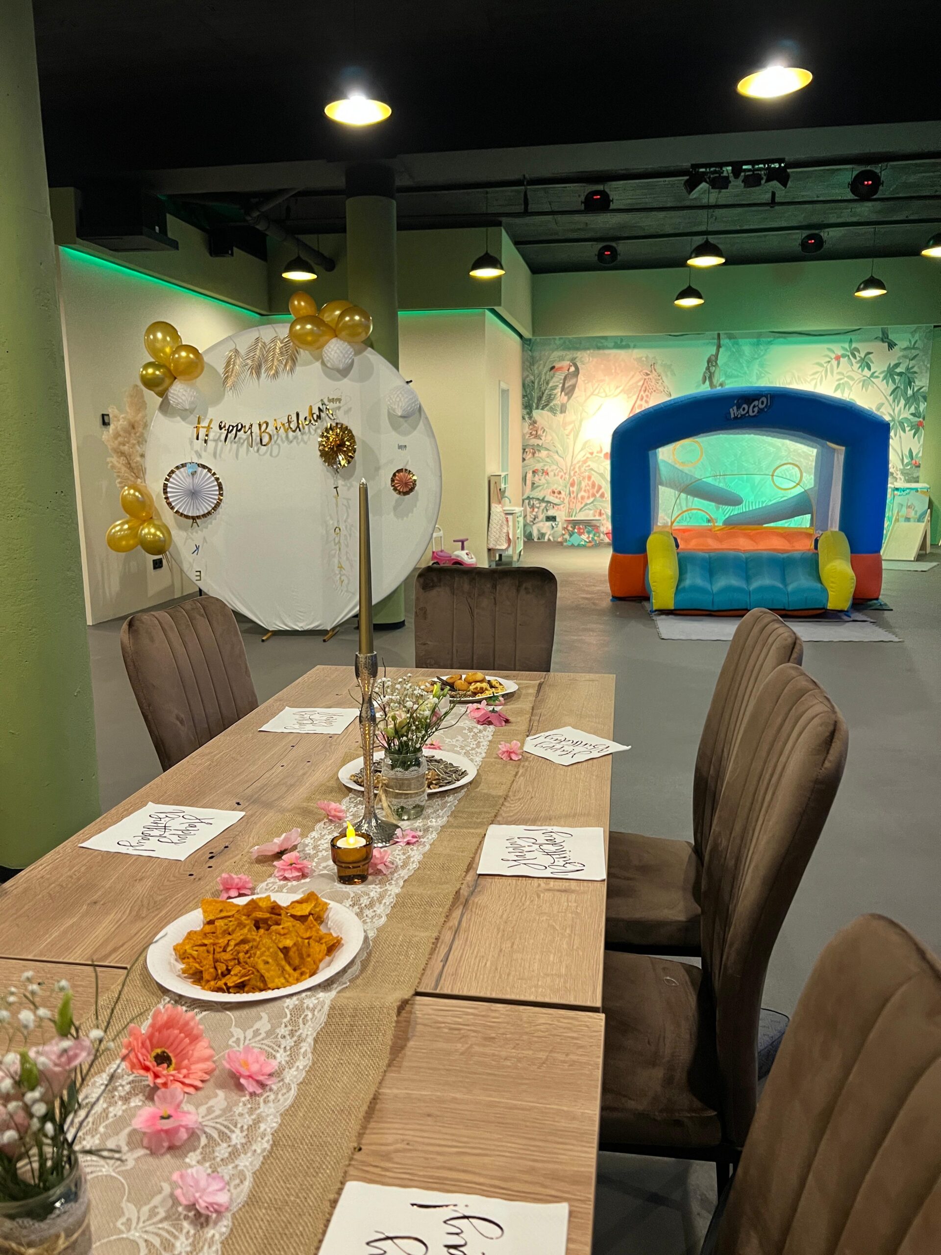 Auf 170 m² liebevoll und kreativ gestalteter Fläche erwartet dich ein Ort voller Spaß, Bewegung und Wohlfühlatmosphäre – perfekt für Familienfeiern, Kindergeburtstage, Vereinsabende oder private Events aller Art.